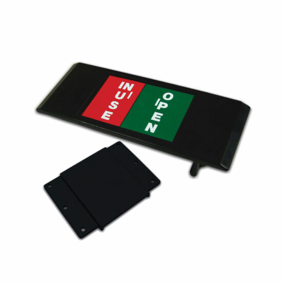 Cerradura de un baño portátil (Rojo/Verde) con una corrediza (Rojo/Verde) y soporto plástico.