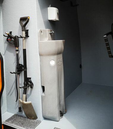 Estación de lavamanos interior Obbe 2 es una estación que cabe en todas las marcas y modelos de baños portátiles.
