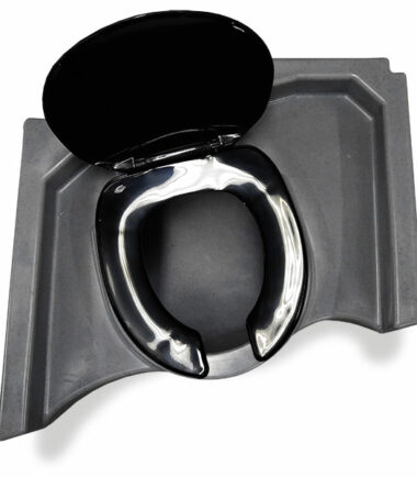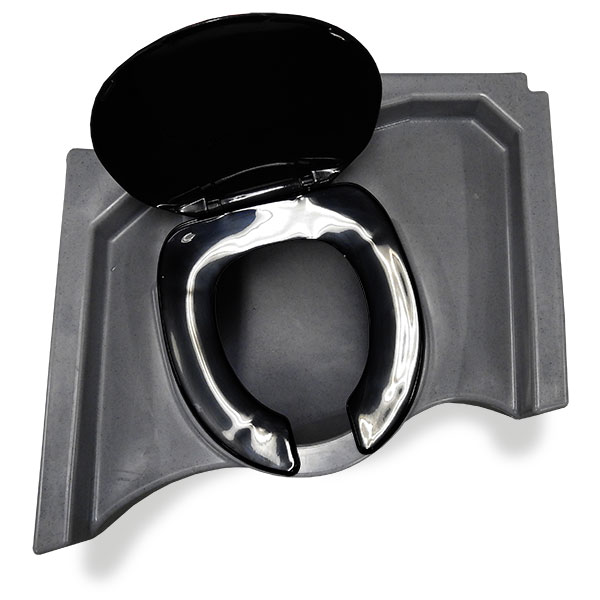 Le siège des toilettes est incliné pour une utilisation efficace de l’espace.