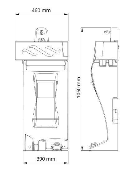 With a height of 106cm and a washbasin height of 95cm, the Neptune offers ample space for handwashing, and the washbasin measures 43 x 15cm. The unit has a width of 46cm and a depth of 23cm, making it a compact and space-saving solution for mobile toilets.