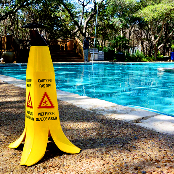Banana Cone, in yellow plastic with a warning for a slippery floor.