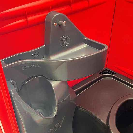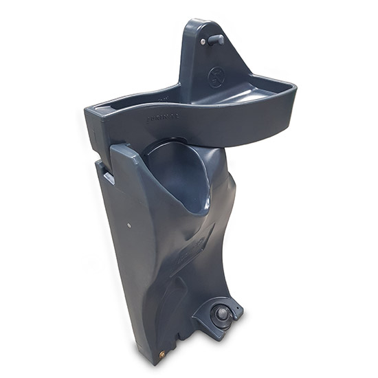 Hand wash unit and urinal, the Helios combines the two into a sanitation unit for placement in portable toilets.