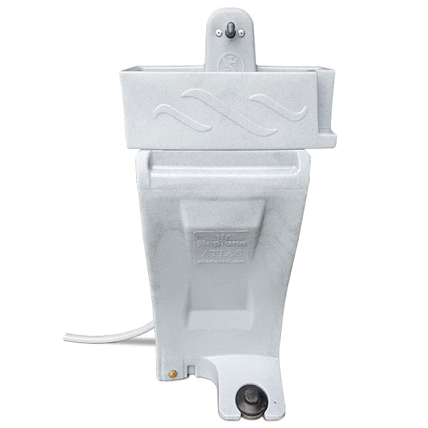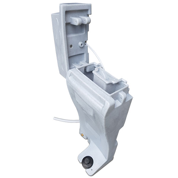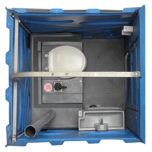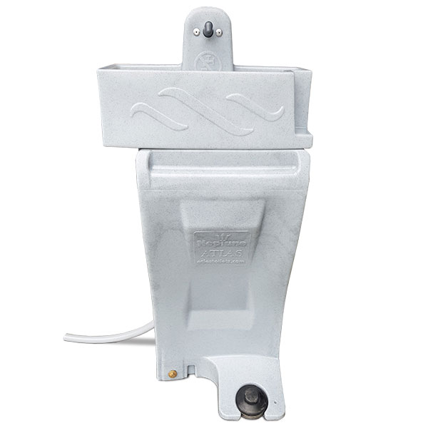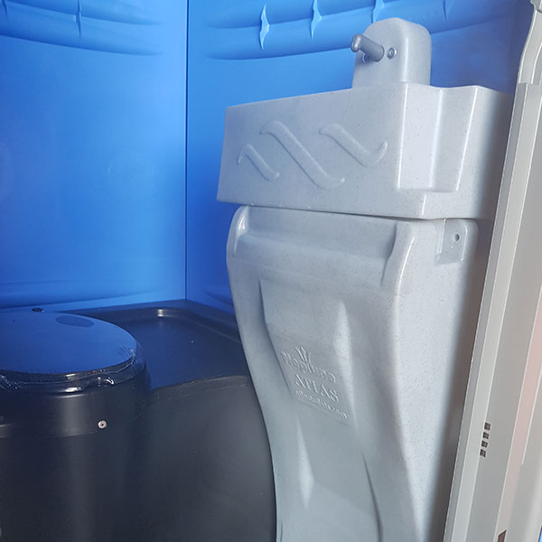 Hand wash unit Neptune with spacious washbasin for installation in mobile toilets. The washbasin can be hinged on the left or right, so that the Neptune can be mounted on the left or right side of any mobile toilet. The Neptune tank is easily accessible for filling, but also for (high pressure) cleaning. The waste water is drained through a hose to the toilet tank. Waste water is drained through a hose to the toilet tank.