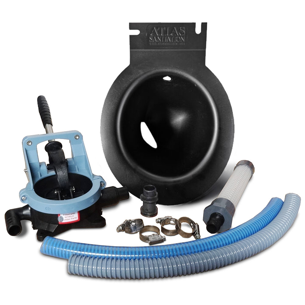 Recirculation set complete with Whale hand pump, bowl, hoses, filter, connections.