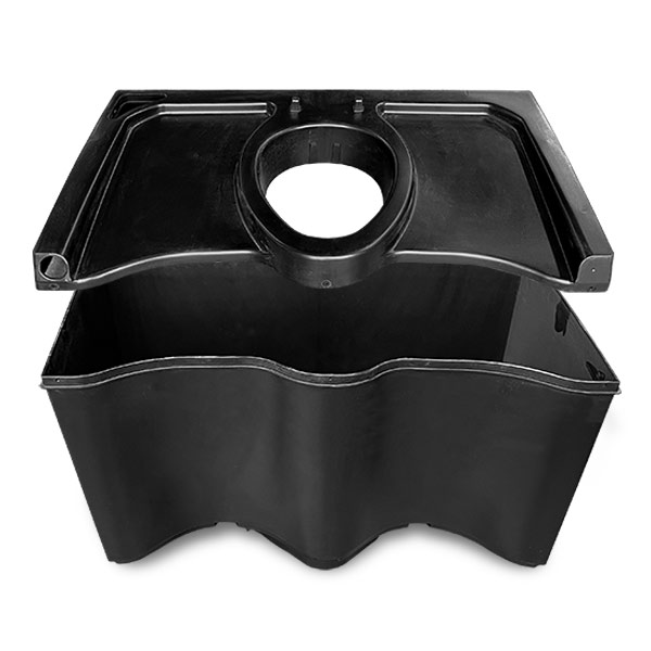 Waste tank and top for the CUBE portable toilet with 210 liters capacity. Plastic tank in a dark grey colour.